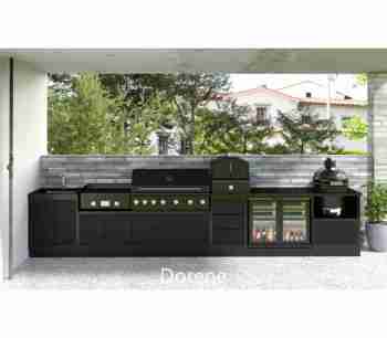 خزانات مطبخ خارجية فاخرة مقاومة للطقس مع شواية مسطحة ووحدات تخزين لألعاب الفناء الخلفي